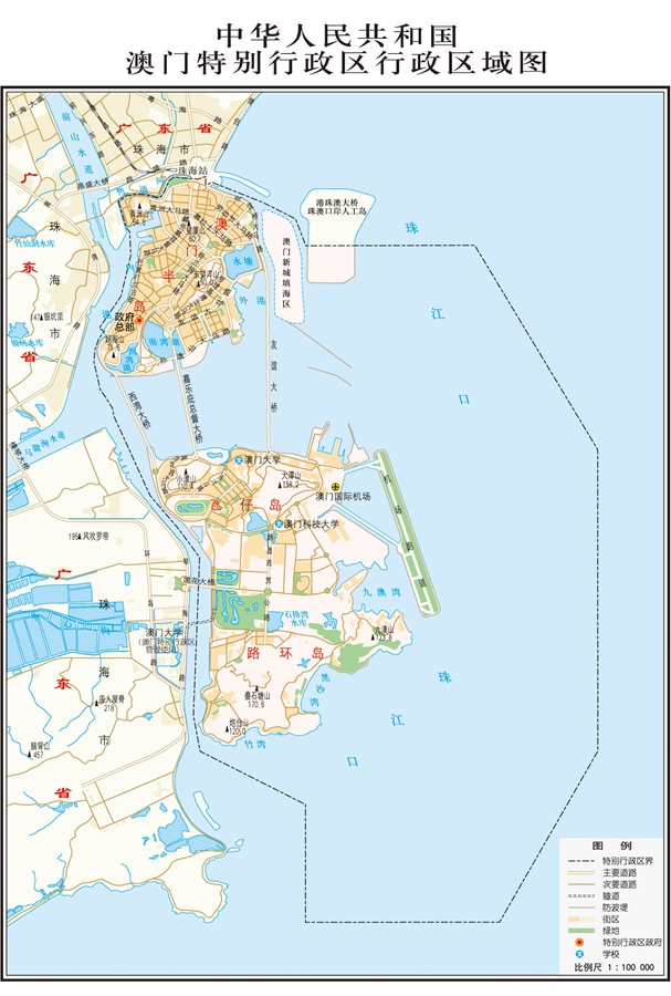 • 澳門特別行政區由澳門半島、氹仔島和路環島組成。澳門半島與氹仔島之間通過澳氹大橋、友誼大橋和西灣大橋連接。氹仔島與路環島因填海而連為一體。